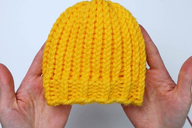This is another simple baby hat pattern, but this one has regular brim. Instead of a folding it, we'll alternate knit and purl stitches to create a stretchy, ribbed brim.